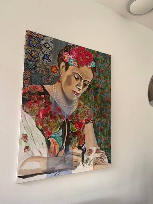 Schilderij van acryl en beplakt